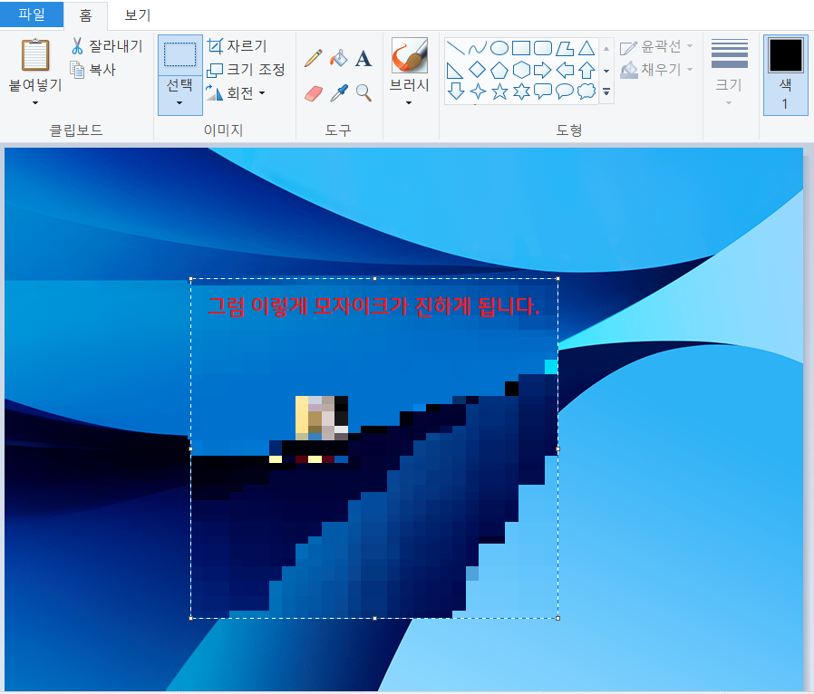 5. 그러면 이렇게 모자이크 처리가 됩니다. 그리고 모자이크 처리가