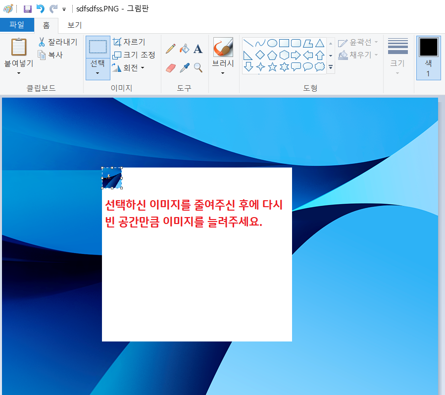 4. 선택한 이미지를 드래그해서 줄인 다음에 다시