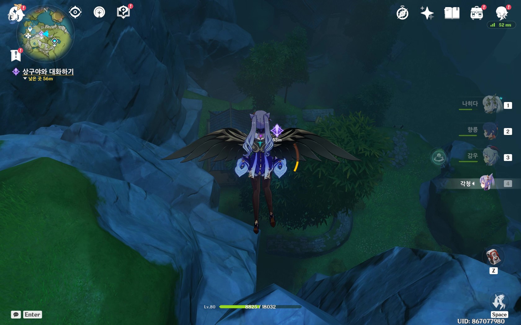 4. 위치 추적에 도착하시면 페이몬과 이야기를 하는데