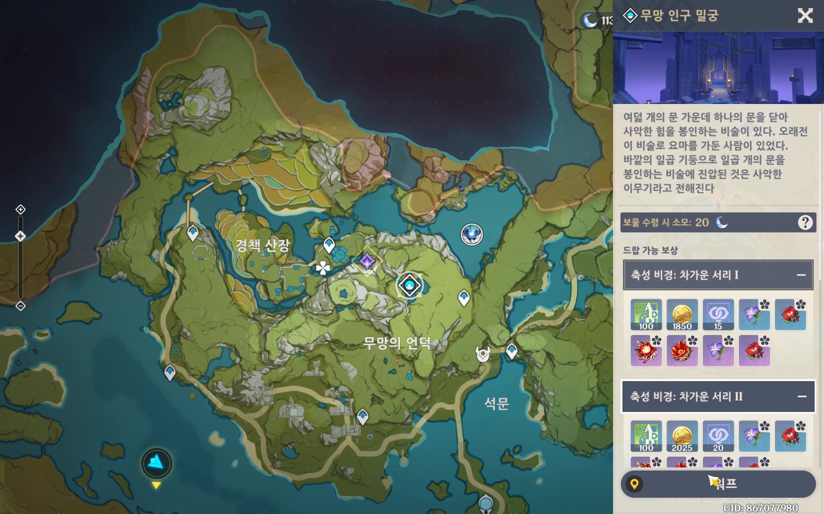 2. 무망 인구 밀궁 쪽에서 비경 입구을 기준으로 오른쪽 언덕을 타신 후에 업적